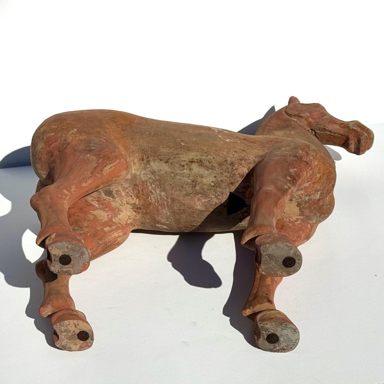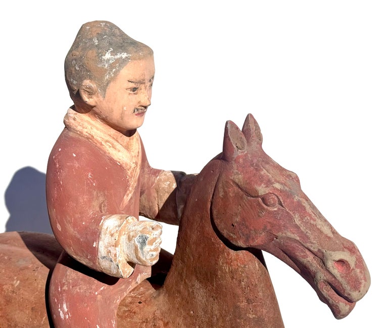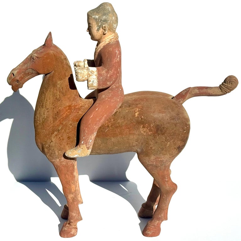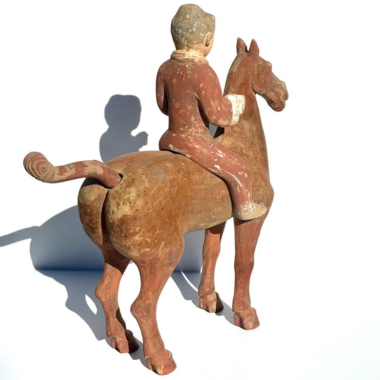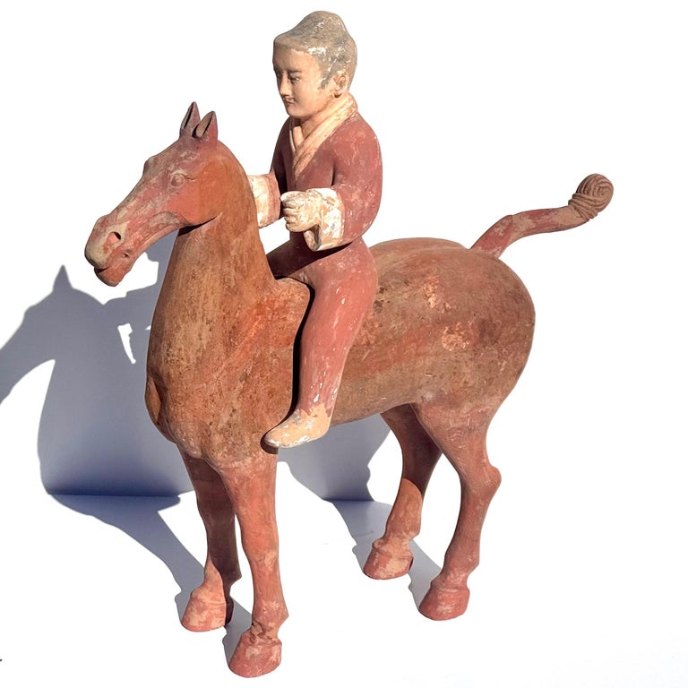 Rider and tail is removable and are original in excellent condition. This is a rare example with attributes of exquisite Tang Dynasty design. This is also a larger example with ample original red paint remaining.