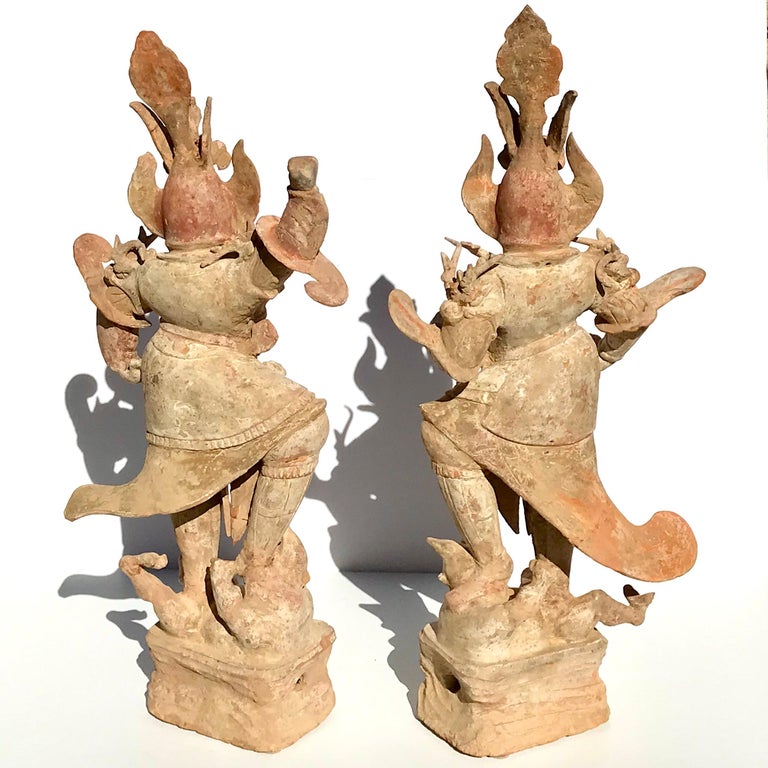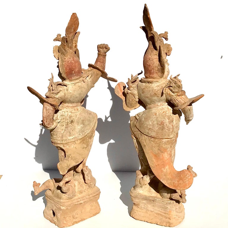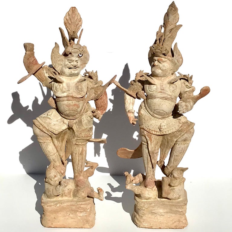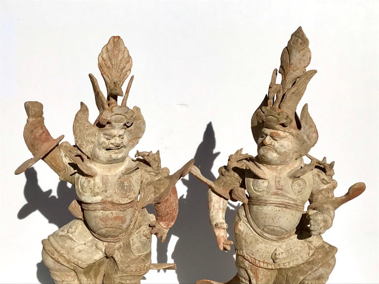 Tang Dynasty Pair of Painted Pottery Lokapalas