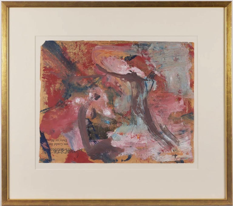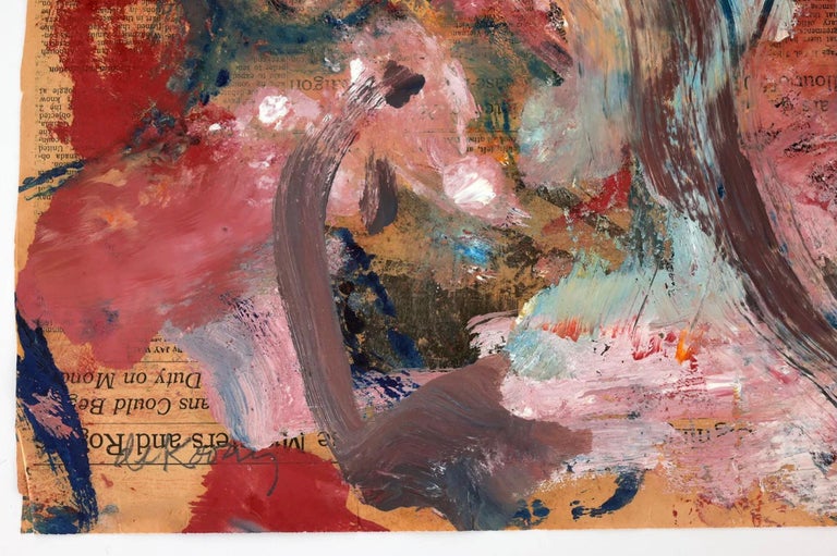 Abstract oil on Newspaper (NY Times, Friday Jan. 26, 1973). Pencil signed lower left.